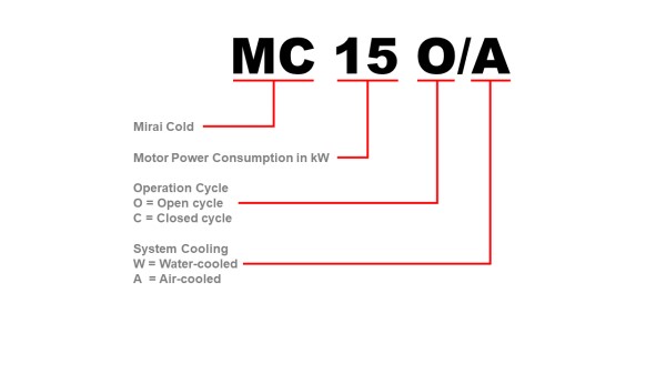 - Closed cycle – machine operates as an indirect refrigeration system and is equipped with heatexchanger for the secondary cooling medium